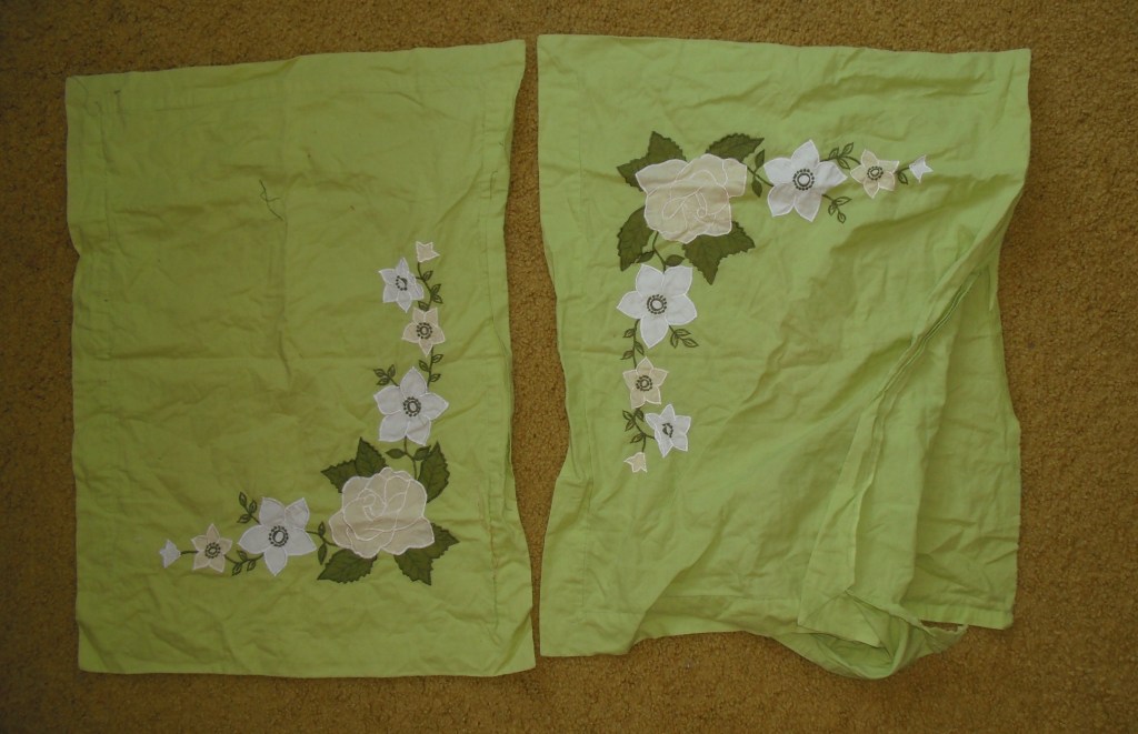 The blog has been on the move! In terms of net displacement, Behold the Thing has relocated from Ontario to Nova Scotia, but in the meantime we scratched the travel itch by running around England for a while (as if trying to imitate Charity Shop Chic even more than we already have). Sewing Machine #1 (2013-2024) did not quite survive all this, so we took it to electronics recycling and waited until our return to buy another machine of the exact same model (Janome Sewist 625E). It must be admitted that in the meantime we did nothing to stop the flow of potential refashion projects into the house. The above, for instance, is a little cotton sundress that I grabbed off a bargain rack at a TKMaxx in the autumn of 2023 for £4. At the time, it was intact and new with tags, but I accidentally deleted the photos I took of it before I detached the gathered skirt. This is why, in the picture above, it’s been hastily safety-pinned back together. (In my defense, the label says ‘Pieces’, but it came with only one of those.) I was able to get the dress on in its default state, but the cut of it is way off relative to my physical dimensions. The vertical span of the bodice is barely adequate, for one thing. For another, my body has a long torso and this dress has none whatsoever. Empire-waisted dresses on me are not a good idea. However, I love the print (pink with diagonal chains of little yellow circles), and the ruffles on the sleeves are wonderful. I’d like to save those. Decision: introduce a second fabric – some bright yellow cotton matching the polka dots – for a new bodice, and maybe also a flounce around the bottom of the skirt as well. Oh yes!
