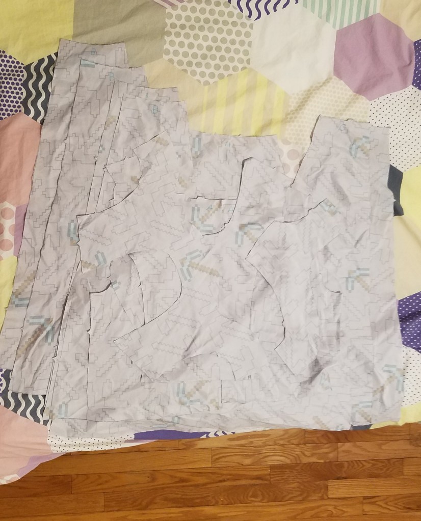 I cut out one of the pieces wrong, but fortunately there’s enough fabric that I can do it again.