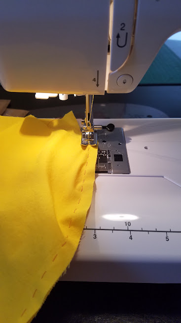 No problems. Then I cut both raw edges of the yellow edging to slightly different heights and zig-zag to tidy up the seam edge.